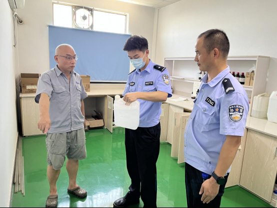 8月以来,民警谭凌皓等人针对易制毒企业化学品的存放、登记、使用情况,以及企业管理人员管理责任落实情况,排查安全隐患等开展大清查、大排查行动。通过核对易制毒化学品管理台账、检查相关配套设施、储存环境、安防措施等,对企业进行了安全评估,现场计分纳入企业管理措施中。对安全性低的企业,要求企业负责人加强单位内部管理,对员工定期开展安全教育,切实将企业安全责任落到实处。同时,向易制毒企业管理人员、易制毒企业从业人员深入浅出地讲解了《禁毒法》《易制毒化学品管理条例》等有关法律法规。